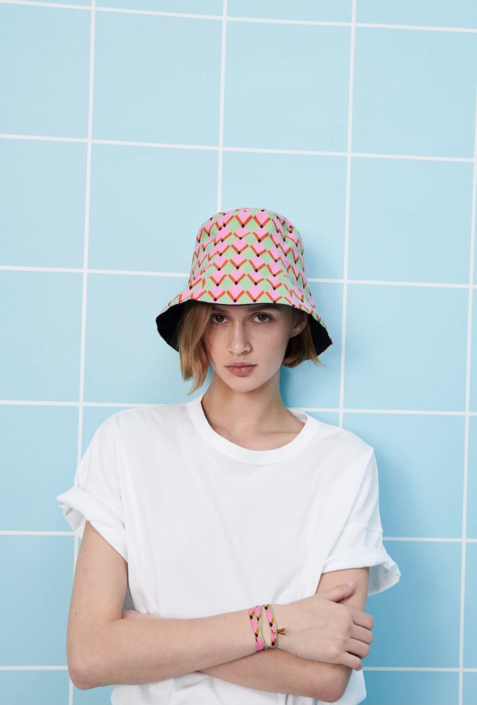 تتصدر قائمتنا لأبرز التصاميم هي هذه القبعة من فندي التي تحمل طبعة زاهية مزدانة بطبعة المونوغروم التقليدية. يمكنك ارتداء القبعة باللون البيج بواسطة عكس الخامة الملونة الى الداخل.