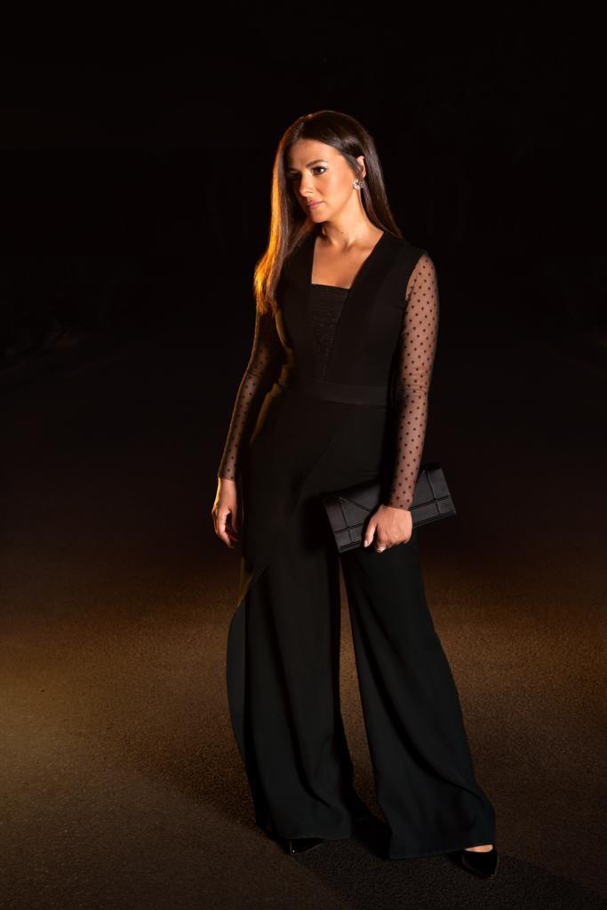 ظهرت النجمة المصرية دنيا سمير غانم باطلالة كلاسيكية من توقيع علامة MAMZI في افتتاح المهرجان القومي للمسرح . وقع اختيارها على طقم اسود مكون من قميص ذات أماكن مصنوعة من الشيفون الشفاف والمنقط، مع بنطلون أسود ذات قصة واسعة. واكتملت هذه الطلة بحقيبة طراز كلاتش باللون الأسود لتكون قد حققت طلة أحادية اللون متوازنة وجذابة.