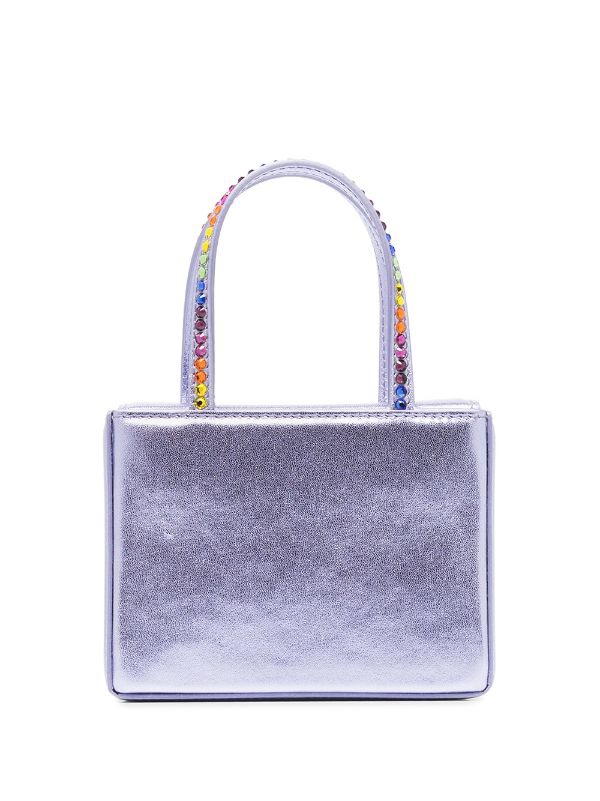 واخيرا نختتم بحقيبة الموسم Amina Muaddi التي نتوقع ان تلقى رواجا واسعا وكبيرا جدا هذا الموسم. لم تنجع المصممة أمينة معادي في تصميم الاحذية الاكثر طلبًا فحسب، بل هي الان تكتسح الساحة بشكل قوي من خلال تشكيلة حقائب واكسسوارات مزدانة بالفصوص البراقة. اخترنا لك حقيبة ميتاليك بلون لافندر مميز تتميز بتصميم هندسي وتفاصيل احجار براقة على سير الحقيبة