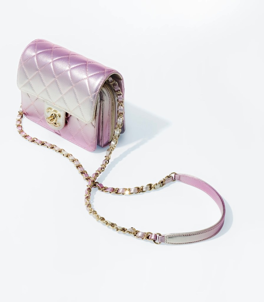 دائما ما نجد علامةChanel تواكب الصيحات الرائجة باسلوب ابداعي وشبابي جديد ومبتكر. تتميز هذه الحقيبة بروح دان شانيل الكلاسيكية ذات طابع انثوي وناعم جدا حيث تظهر تدرجات اللونين الوردي والفضي بفخامة هادئة وراقية.