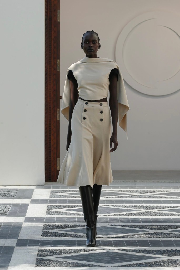 كالظلال الطويلة التي تظهر تحت أشعة الشمس البحرينية تظهر تصاميم مجموعة الموسم الجديد لموسمخريف وشتاء ٢٠٢٣ طويلة ورشيقة وأنيقة مثل التنانير والمعاطف الماكسي.