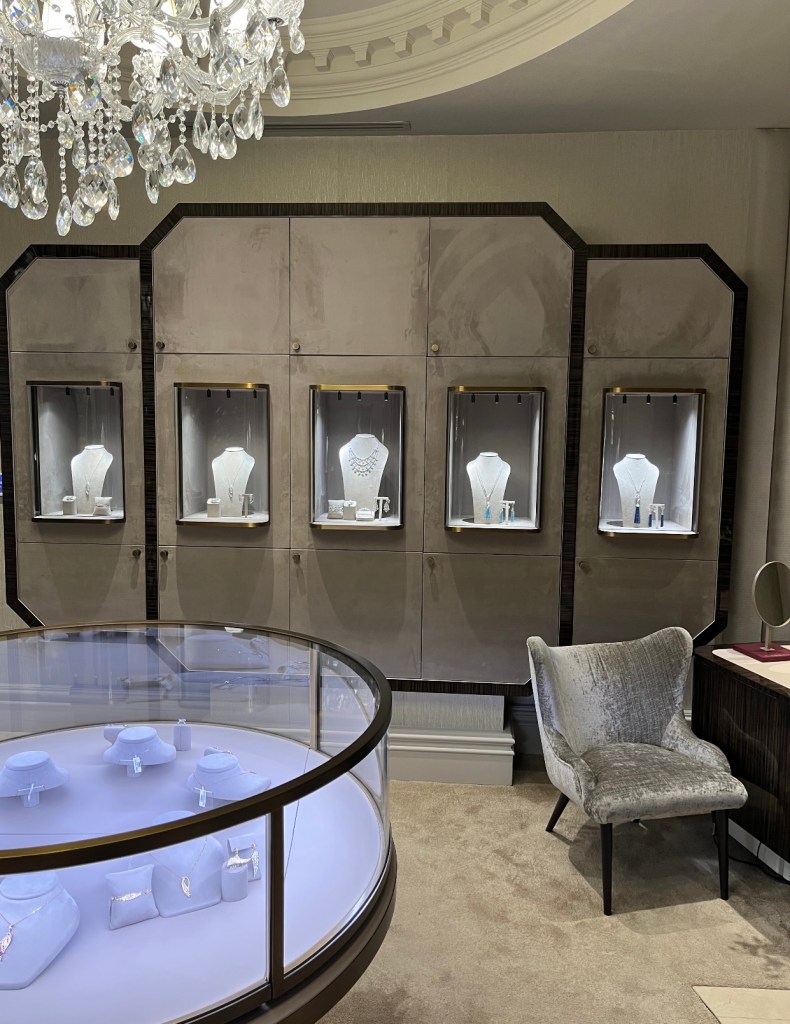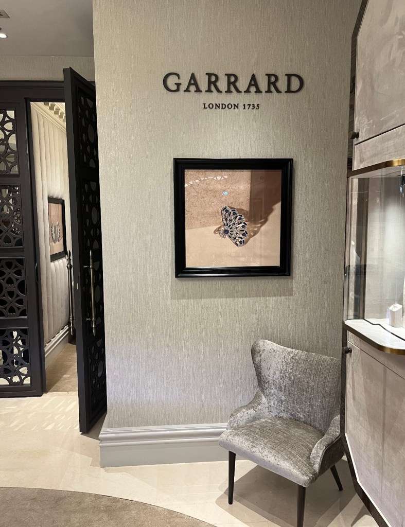 ويعكس المتجر الجديد الجوهر الأصلي للعلامة وهويتها الحقيقية بفضل ديكوراته الأنيقة والفخمة والأثاث المخملي الفاخر وتفاصيل الجدران الغنية بالألوان الدافئة إلى جانب الزخارف المميزة التي تتناغم مع إرث Garrard العريق.