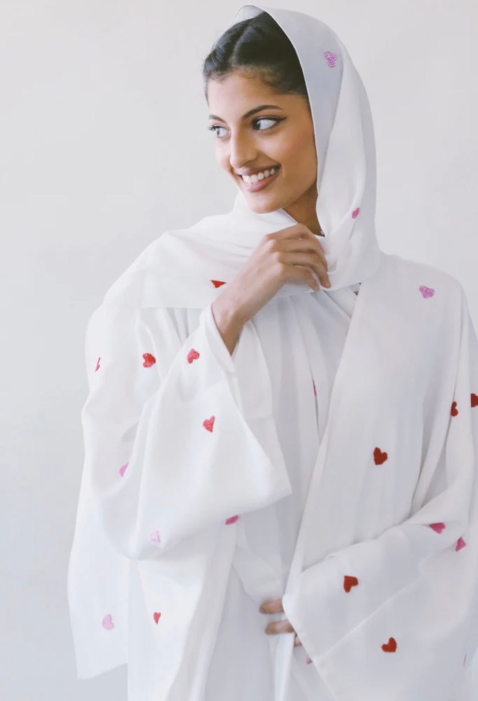 وازدانت الأزياء التقليدية مثل العبايات والجلابيات بزخارف القلوب المطرزة بأسلوب حيوي وأنيق وجذاب مناسب لاطلالة أنيقة ومرحة ومواكبة لموضة 2023