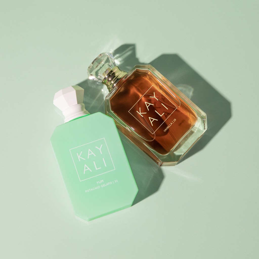 يستكنّ العطر في القارورة الزجاجية البلورية الأولى للعلامة ويعلوها غطاء أبيض غير لامع على شكل جوهرة. لا شكّ في أنّه سيأسر القلوب ويوقظ حواس عشّاق الأطايب في كلّ مكان! سيتوفّر عطر Yum Pistachio Gelato | 33 Eau de Parfum Intense من KAYALI للشراء في قارورة بحجم 100 مل (145 دولاراً أميركياً و130 يورو)، وقارورة بحجم 50 مل (105 دولار أميركي و96 يورو)، وقارورة مصغّرة فاخرة بحجم 10 مل (29 دولاراً أميركياً و30 يورو) ورذاذ سفر بحجم 10 مل (27 دولاراً أميركياً و26 يورو)، اعتباراً من 21 مارس 2023 (اليوم العالمي للعطور).