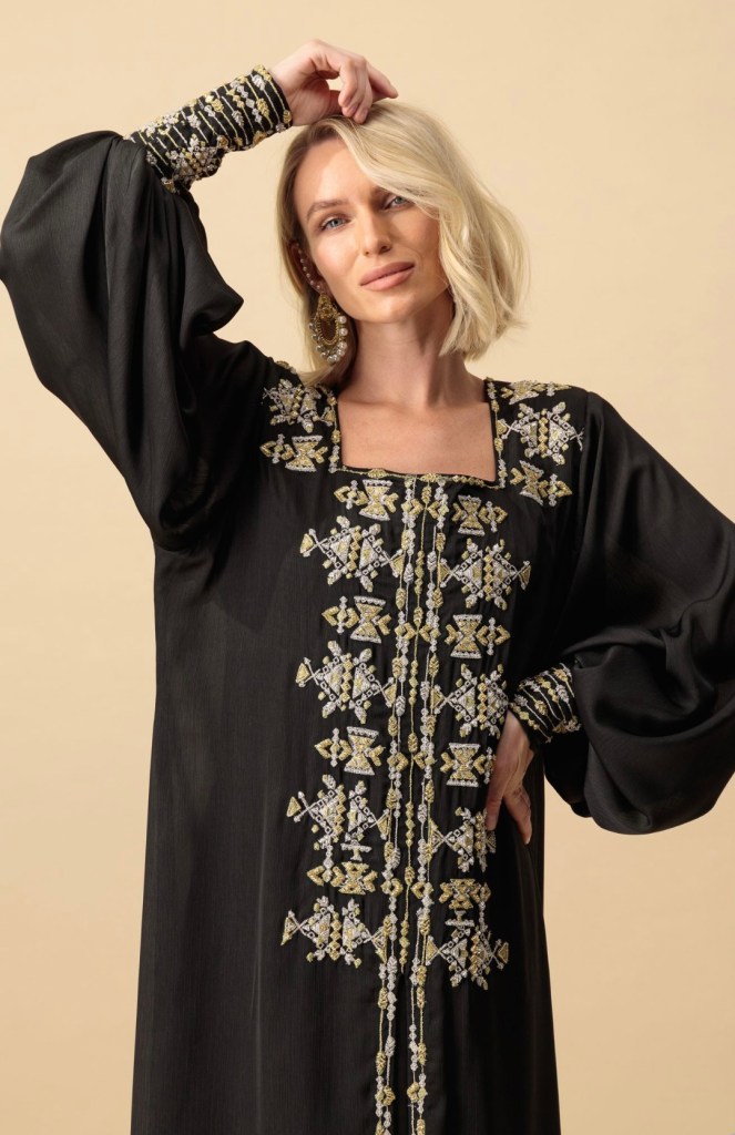 تم إعادة تصور القطع التقليدية للأزياء العمانية بطريقة عصرية وحديثة ، وتأثري بعض القطع مع تصاميم طرح مطرزة ناعمة لتمنحك اطلالة متكاملة
