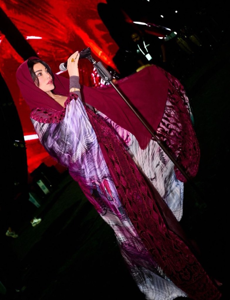 شهدت العاصمة السعودية أمسية ساحرة مع تألق النجمة هيفاء وهبي خلال حفلها المنتظر. قبل صعودها على المسرح، ظهرت هيفاء في التحضيرات مرتدية عباية ملونة بعروق بنفسجية وعودية مع طرحة عودية، ما أعطى لمحة عن أسلوبها الشبابي والعصري الممزوج بالفخامة العربية، وأظهر استعدادها الكامل لتقديم عرض متكامل لجمهورها.